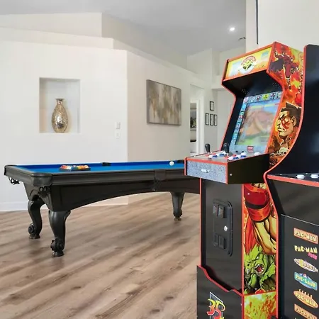 Une cuisine équipée avec une cafétière/théière électrique, un réfrigérateur et de la vaisselle est incluse dans cet établissement Villa 4Br Getaway With Pool And Billiard afin que les clients puissent cuisiner eux-mêmes. L'aéroport international McCarran de Las Vegas est à 26 minutes en voiture de ce logement. Le billard sont possibles dans la région.
